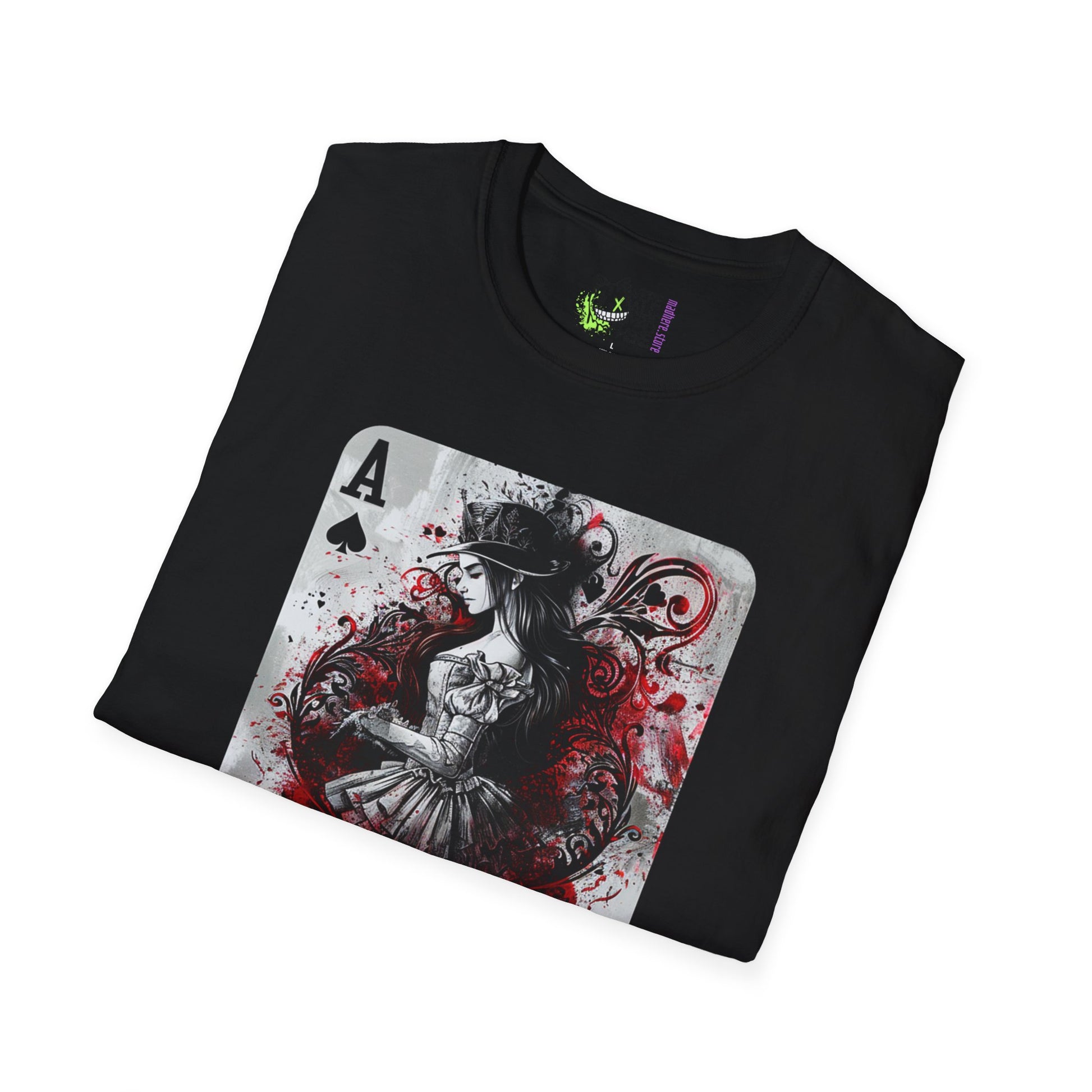 Step right up, dear wanderers of the wondrous and the weird! The Mad Hatter himself invites you to behold a marvel like no other – our "Twisted Alice - Ace of Spades" T-Shirt. Oh, what a delightfully deranged design awaits your curious eyes!