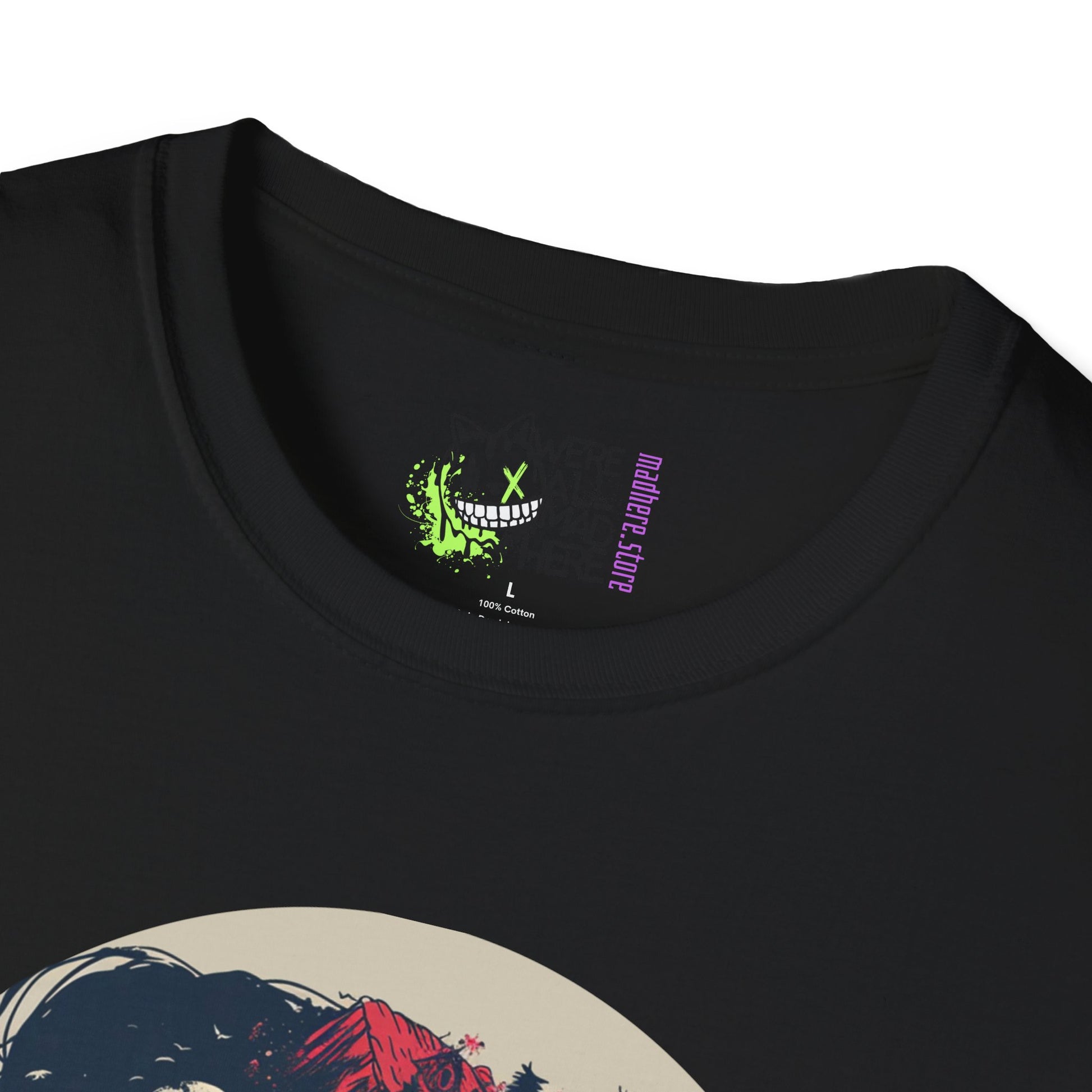 Here we have a masterpiece, my dear wanderers, captured in the finest of threads and ink. A tapestry of whimsy and wonder, where the ordinary becomes extraordinary, and the mundane is but a fleeting memory. So gather 'round, ladies and gentlemen, for this is not just a garment—it's a journey into the rabbit hole, where nothing is quite as it seems.